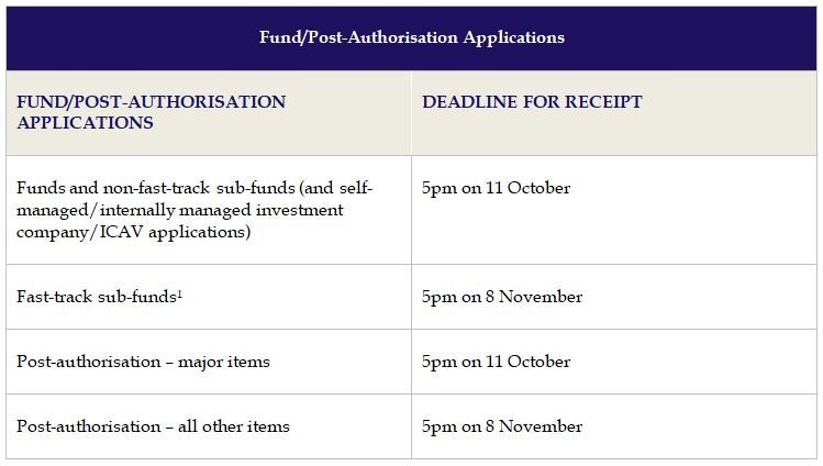 - ICAV registration/conversion/migration applications – 5pm on 2 December.